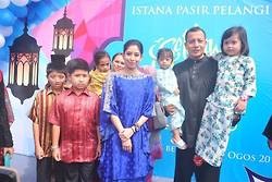 HH Princess Aminah of Johor celebrates Eid with the public in Pasir Pelangi Palace in Johor last August, with her youngest brother, HH Tunku Putera of Johor, Prince Abu Bakar -